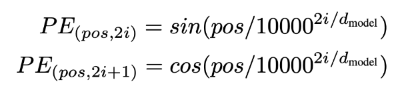 [pos / np.power(10000, 2 * i / d_emb) for i in range(d_emb)]